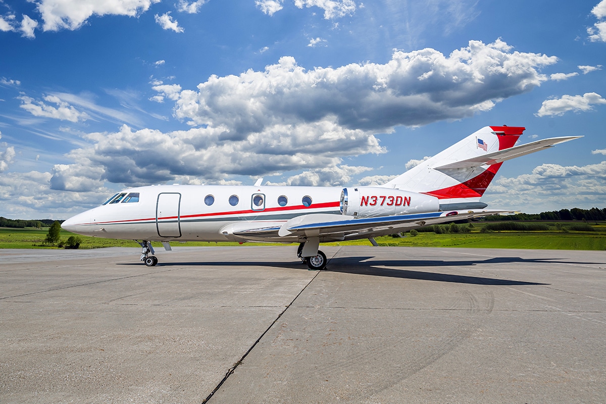 Interior refurbished April 2010 with new woodwork and soft goods. Nine-passenger interior with a forward four-place club and aft two-place club opposite a three-place divan. Falcon 50 interior shell with more interior space than a standard Falcon 20. LED cockpit and interior lights. Skandia sound control blanket insulation throughout cockpit and cabin. Falcon 50 entryway handrail. TIA coffee maker.
